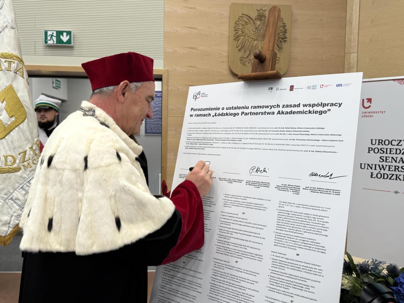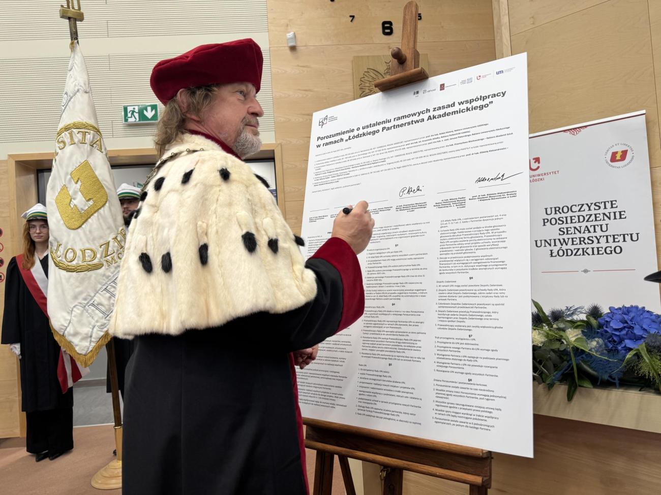 Na uroczystym posiedzeniu Senatu Uniwersytetu Łódzkiego (26 maja 2025 r.), Rektorzy uczelni publicznych podpisali Porozumienie o ustaleniu ramowych zasad współpracy w ramach „Łódzkiego Partnerstwa Akademickiego”, których efektem będzie wspólne wspieranie i realizacja inicjatyw uczelnianych m.in.